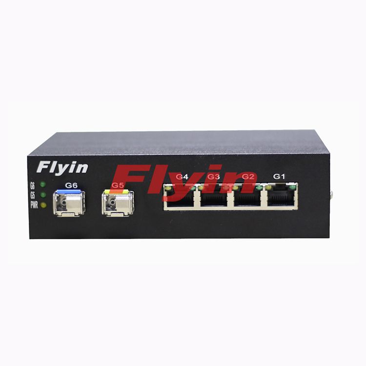 10/100/1000M Industrial Fiber media converter with 4 RJ45 port + 2 Fiber port