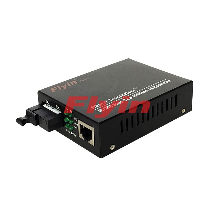 FLY-1F1T series media converter is 10/100M adaptive Ethernet optical media converter external power supply that can be twisted pair electrical 10/100BASE-TX and 100BASE-FX optical signal conversion. It will network transmission distance limit 100 meters from the copper wire extending to 2km (multimode fiber), 100 km (single-mode fiber) can easily achieve HUB, SWITCH, servers, terminals and remote terminal interconnection between. FLY-1F1T series Ethernet optical media converter plug and play, can be used alone, it can also be integrated in the multi-machine use the same chassis.