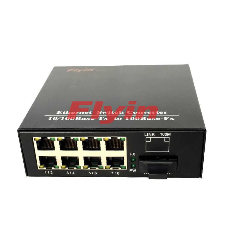 10/100M Industrial Fiber media converter with 8 RJ45 port+1 Fiber port