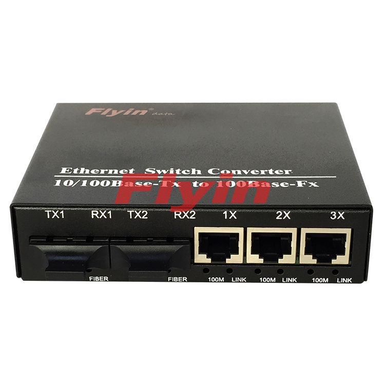 10/100M Industrial Fiber media converter with 3 RJ45 port+2 Fiber port