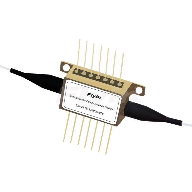 The SOAD fiberoptic amplifiers at 1310nm and 1550nm are designed by using a high quality angled SOA chip and a TEC which can assure a stable amplified output for a large dynamic input signal. The devices are available in a standard, 14-pin butterfly package at the 1310nm and 1550nm bands. The SOA devices have high optical gain, high saturation output power, low polarization dependent loss, low noise figure and broad wavelength range. We have options of optical isolators for input and/or output side as well as output fibers of SM fibers, PM fibers and other special fibers per customer specifications. The products are Telcordia GR-468 qualified, and in compliance with RoHS requirement.