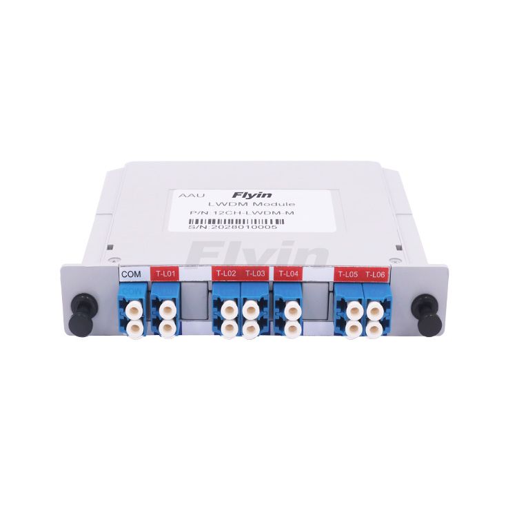 Flyin's 12CH LWDM Mux and Demux module with LC/UPC connectors, low insertion loss and high return loss.