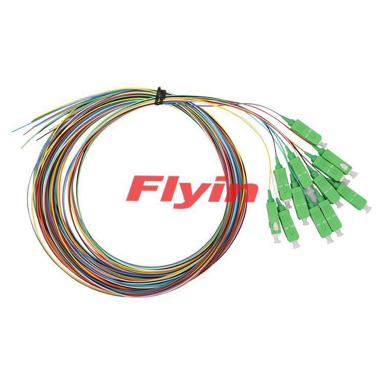 Flyin Optronics' Fiber optical pigtail is a short optical fiber permanently attached to a source, detector, or other fiber optic device at one end and an optical connector at the other. Flyin Optronics offer kinds of pigtails, such as standard type LC, FC, SC, ST, MU, MTRJ, MPO, D4, DIN, SMA, E2000, ect, also provide bundle multi-fiber pigtails.